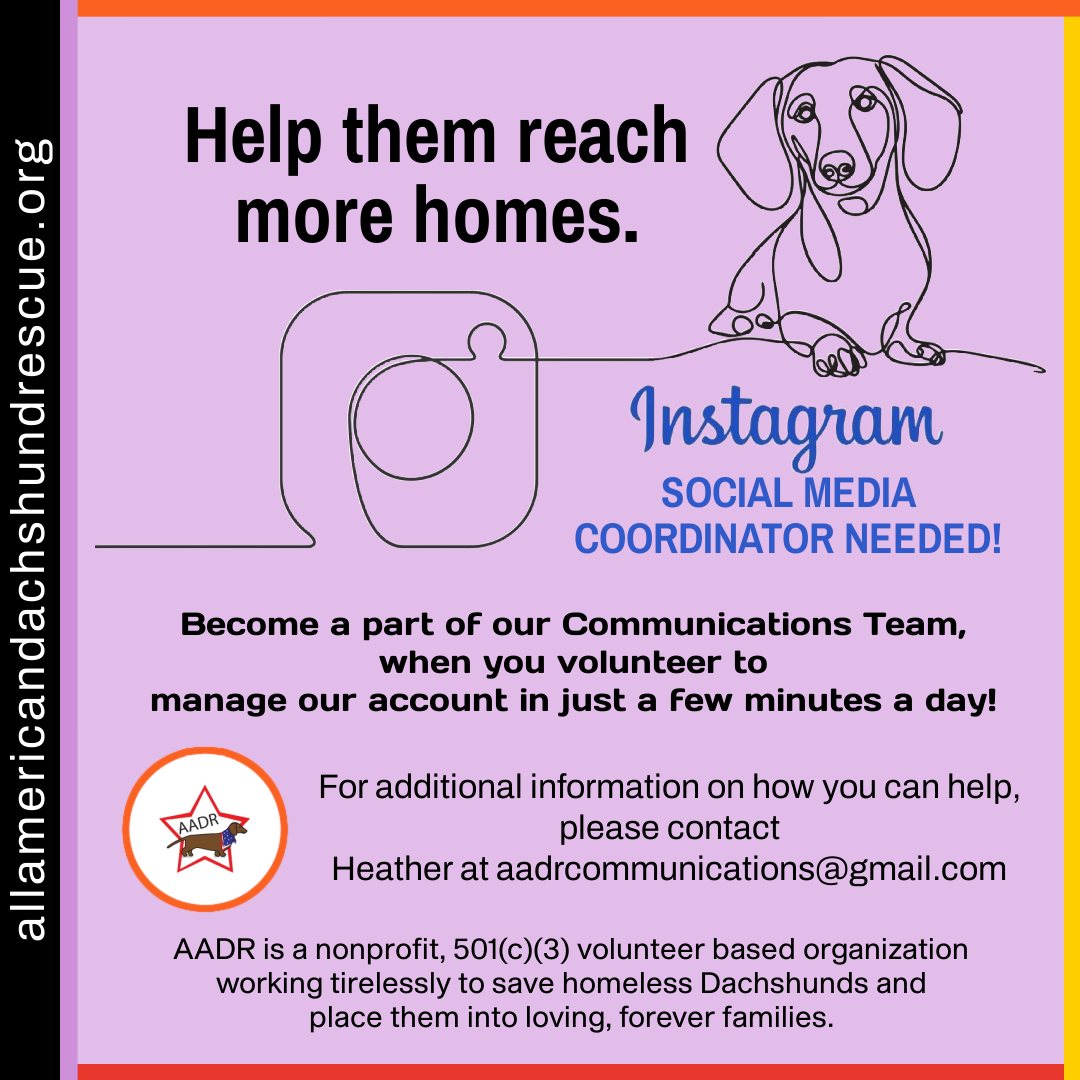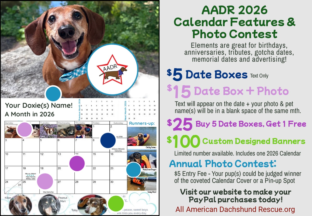 AADR is a non-profit 501(c)(3) volunteer based organization. We work tirelessly to save homeless Dachshunds and place them into loving, forever families.