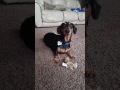 Baron is a happy boy and loves to go bye-bye in the car and also for walks. It seems that thunder storms make him a little uneasy, but he is just a little nervous and will calm down if you allow him to sit next to you. Baron is not much of a burrower but would still love to sleep in the big bed with his people! So far, he is not much of a barker. He will bark along with the other dogs, but is usually the first to stop and run back to be with you. We have not witnessed any marking or accidents in the house and he uses the doggy door like a champ. You really could not ask for a better little man.