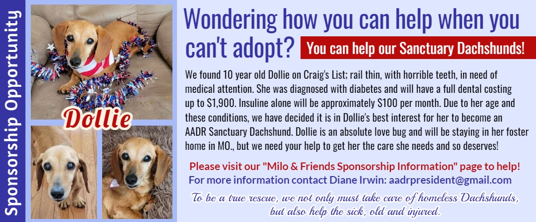 AADR feels that to be a true rescue, we need to help the sick, old and injured Dachshunds, not just the homeless ones.